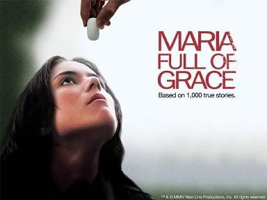 Maria Álvarez, uma jovem colombiana de 17 anos que vive com a família, está determinada a escapar ao entorpecido quotidiano da sua vida. Uma oferta para um trabalho lucrativo, que implica carregar consigo droga até Nova Iorque, vai mudar o seu rumo. Mas, longe da viagem rotineira que lhe tinha sido prometida, Maria é levada para o perigoso e implacável mundo do tráfico de droga, numa missão de sobrevivência que terá de cumprir para alcançar uma nova vida. "Maria cheia de Graça" ganhou o Urso de Prata para Melhor Actriz e o Prémio Alfred Bauer no Festival de Berlim 2004 e o Prémio do Público no Festival de Sundance.