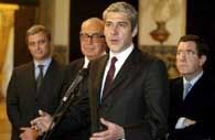 Falou do referendo sobre a Constituição Europeia e da venda de medicamentos não sujeitos a receita médica em outros estabelecimentos que não as farmácias, com o que estamos de acordo.