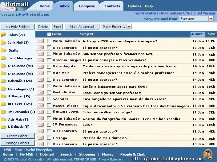 A caixa de correio de Cavaco Silva no MSN Hotmail
